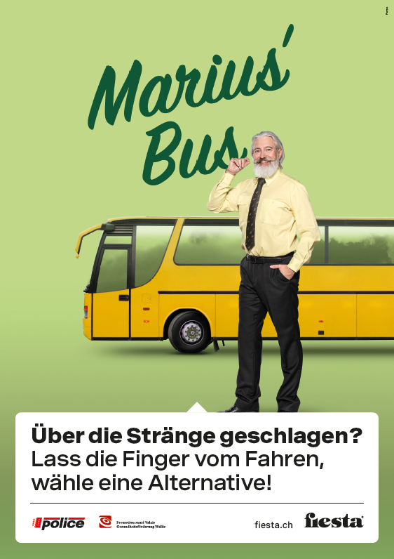 Lass die Finger vom Fahren, wähle eine Alternative!Mit diesem Slogan sensibilisieren Gesundheitsförderung Wallis, die Kantonspolizei und die Partner von Fiesta Autofahrer*inenn für die Risiken des Fahrens unter dem Einfluss von Substanzen.